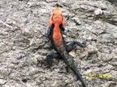 But when the male lizard fights with another its throat changes to a red color. Again during breeding season, the head and shoulder of the male lizard turn to a bright orange or crimson and the throat appears black. The lizard tries to ward off intruders in their territory by brightening their red heads and push ups'.