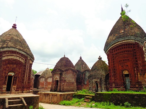 Legend has it that a shepherd boy Basanta captured a lost pet baj (hawk) of Sultan Alauddin Hassan Shah of Gaur and returned it to him. As a token of gratitude, the sultan gifted Basanta the kingdom of Maluti and the new king became known as Raja Baj Basanta. In the course of time, Basanta's family got divided into four clans and each built a cluster of terracotta temples over the next two centuries.