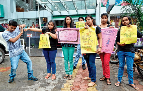 The foundation members also displayed slogans relevant to Ranchi where girls in jeans, skirts and salwar kameezes alike draw stares and lewd remarks.
