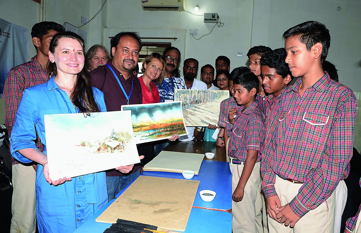 Students of DAV Public School, Gandhinagar, felt it first-hand on Friday while interacting with a group of 10 overseas artists taking part in the ongoing International Watercolour Festival at Audrey House.