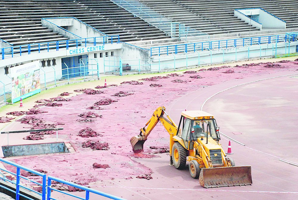 Work to pull out the old polyurethane synthetic track at JRD Tata Sports Complex in Jamshedpur is on in full swing since the past two days.