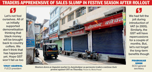 Wholesale traders in Jamshedpur said introduction of GST and a complicated tax return process would result in losses to the tune of over 25 per cent.