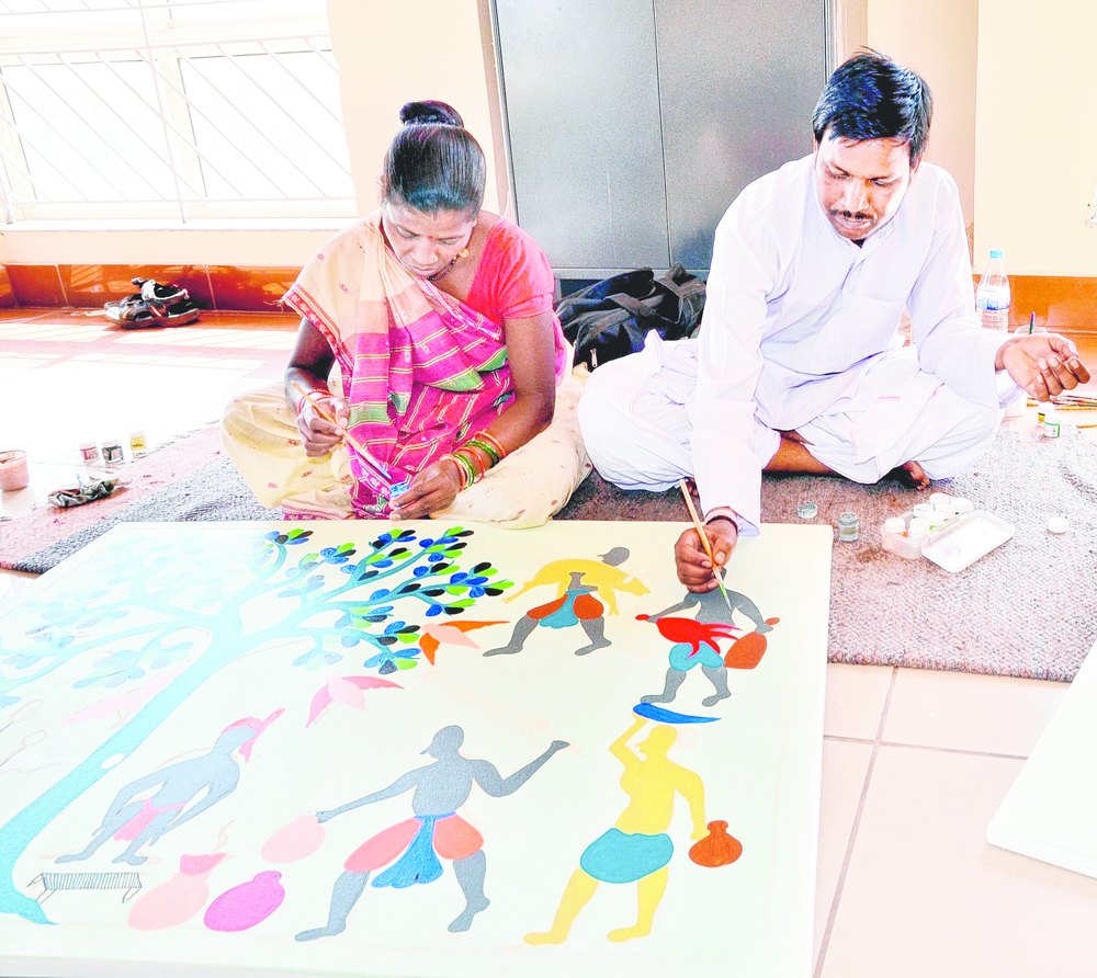 Friday was the third day of the painting camp where 12 artists have assembled from Bihar, Odisha, Jharkhand, Madhya Pradesh and Chattisgarh.