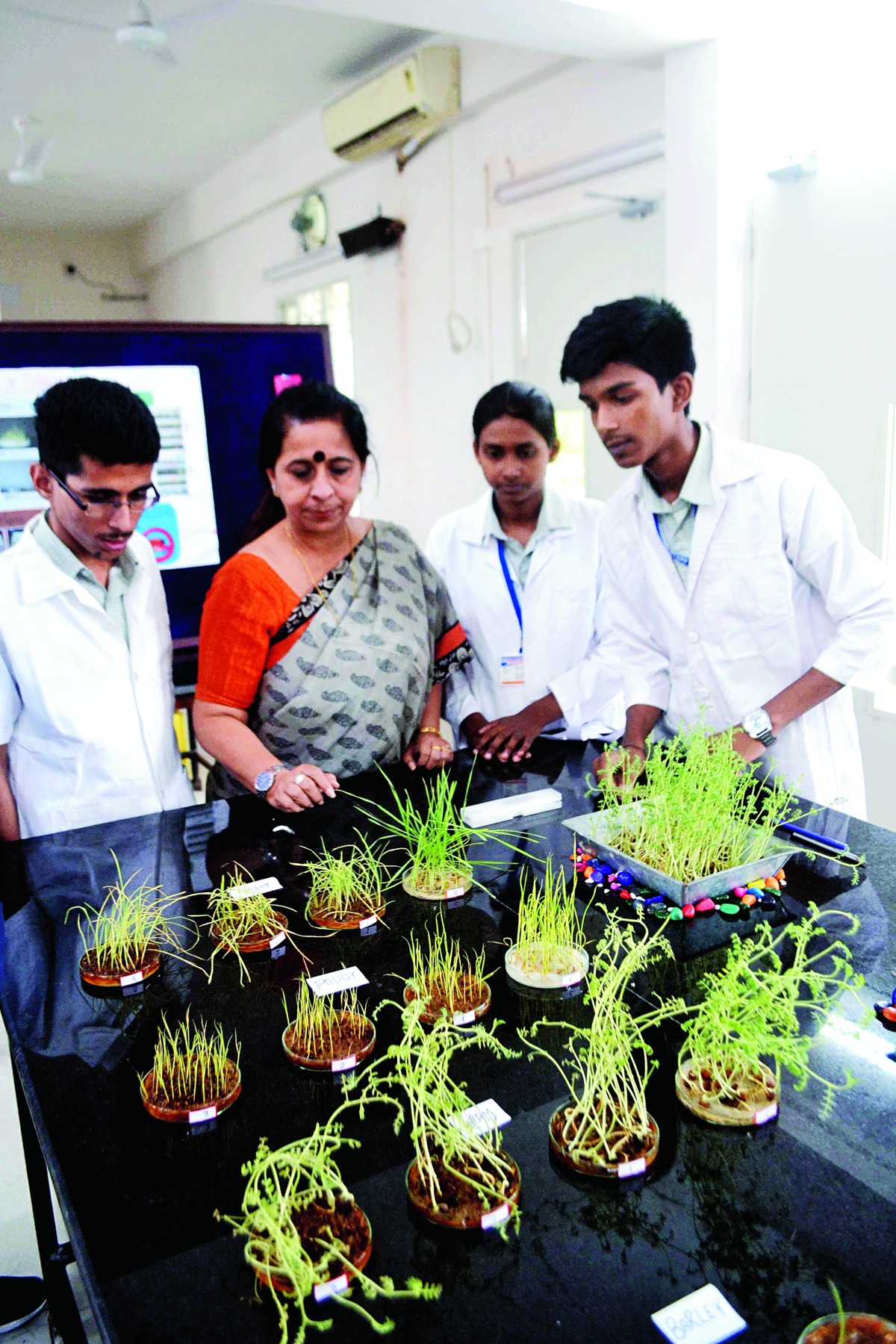 Three Class XII biotechnology students of ADLS Sunshine School in Kadma - K. Sai Bhaskar, Md Abubakar and Shagufta Yasmin - carried out a research on the morphological effects of gutkha on the crop plants.