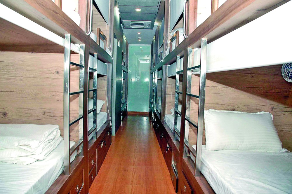 Then, there are bunk pods, twin pods, quadra pods designed as per customer needs. For those looking for more than basic, there's a Queen Pod that comes with a queen-sized bed, a television and a refrigerator.