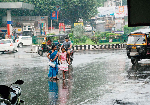 | Residents caught unawares during a drizzle in Bistupur on Friday evening. Picture by Bhola Prasad |