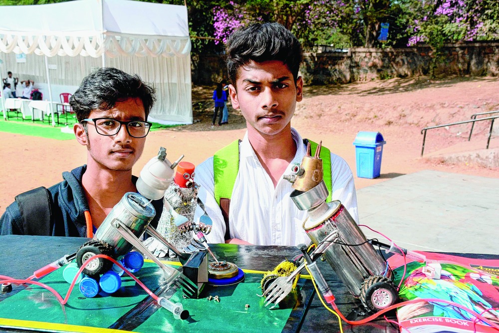 "We made Swachh robots under Swachh Bharat Mission. One robot sweeps and another dumps trash into a bin," said Ashish Mahto and Prince, Class X and XI students of Vidya Bharati Chinmaya Vidyalaya.