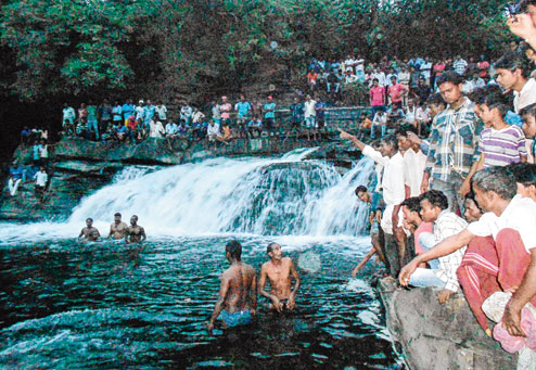 | Divers search for the ISM students’ bodies at Bhatinda falls on Saturday. (Gautam Dey) |