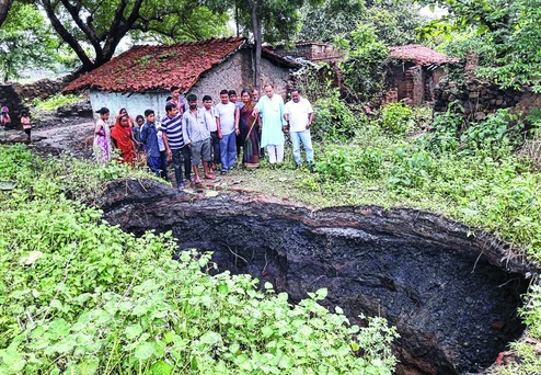A sudden cave-in created a 50-feet-deep crater at underground fire-hit Kantapahari colony near BCCL's Angarpathra Colliery of Katras, 21km from Dhanbad district headquarters, early on Wednesday endangering the lives of 50 families.