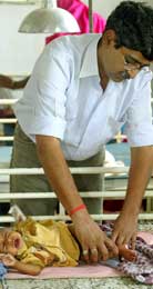 | Ojha, a paediatric surgeon, examines a baby in a Patna hospital. (Reuters) |