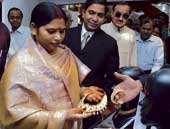 | Meera Munda, wife of chief minister Arjun Munda, looks at a necklace at the diamond festival in Ranchi. Picture by Prashant Mitra |