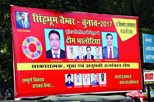 A hoarding in Sakchi, Jamshedpur, on Sunday announces the SCCI elections. Picture by Bhola Prasad