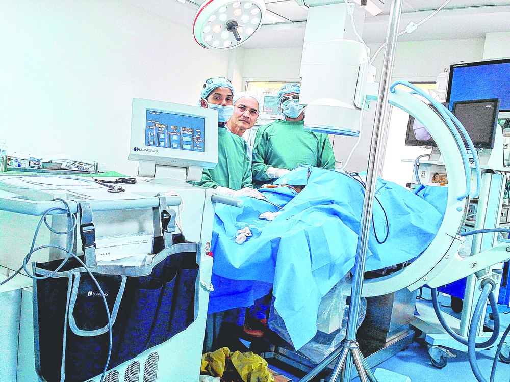 Doctors operate on Sanjharia Devi using holmium laser technology at KGMH in Bistupur on Tuesday. Telegraph picture