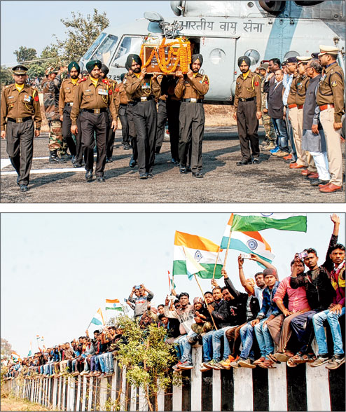 Coal town Dhanbad gave a tearful yet heroic farewell to martyr Shashikant, one of the three Indian soldiers killed in Pulwama, Jammu and Kashmir, on December 17, as his body reached Barwaddah airstrip on a special Indian Air Force chopper at 11.10am.