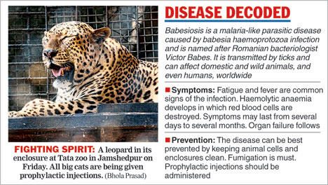 Swapan Ghosh, former consultant of Alipore Zoological Gardens in Calcutta, said Babesiosis can effect any animal and sometimes proves fatal. "Maintaining cleanliness inside cells and enclosure is a must. Controlling the spread of the disease is another major step. I believe the authorities at Tata zoo are competent enough to tackle the crisis," he said.