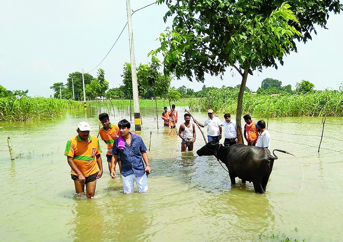 The discharge from Birpur barrage was hovering around 1.3 lakh cusec, while it was 1.7 lakh cusec at Valmikinagar, leading to an increase in the water levels of the rivers concerned.