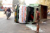 | The vehicle which turned turtle at Sakchi. Picture by Srinivas |