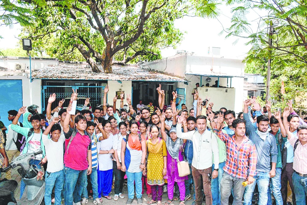 Around 150 students of Jamshedpur Cooperative College, a constituent unit of Kolhan University, among those with poor attendance, protest before chief minister Raghubar Das's Agrico residence-cum-office on Wednesday, demanding they be allowed to sit in the varsity exams (UG and PG) next month.