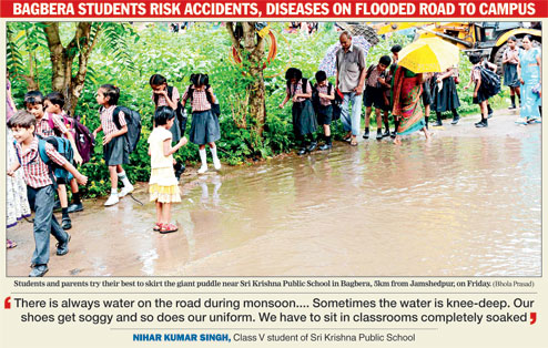 The teething problem is that this maintenance-starved artery for students turns into a pond after every bout of heavy shower. Since riding two-wheelers or steering auto-rickshaws becomes a risky proposition, parents and drivers park their vehicles beyond the 40-metre-long stretch of puddle road.