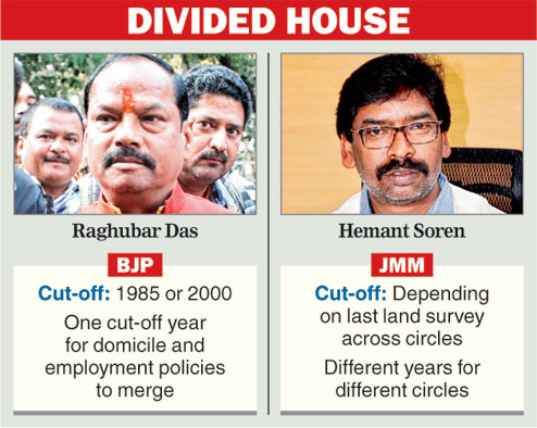 The BJP might also be facing a problem closer home. Alliance partner Ajsu, which claims to champion the sadans or non-tribal original settlers, pitched for 1932 as the cut-off date of domicile.
