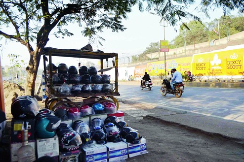 Cheap and substandard helmets are sold on push-carts in areas where police conduct helmet checking drives. Such helmets are available at a price that range from Rs 75 to Rs 200. But a helmet with an 'ISI' mark costs at least Rs 800.
