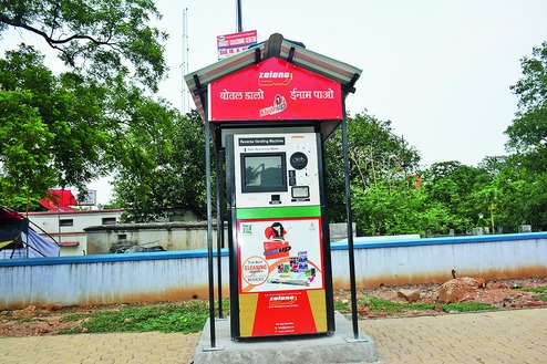 If a person brings a PET bottle or aluminium can - most fizzy drinks are sold in these containers harmful to the environment - to a reverse vending machine for recycling, he or she gets a receipt of a discount redeemable at any of the outlets having a tie-up with that vending machine.