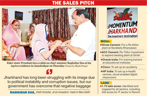 "Jharkhand ka marketing karna aur invitation deney par lagey huey hain hum (I am now marketing Jharkhand and giving out invitations)," chief minister Raghubar Das told The Telegraph here last week to explain the rationale behind the all-India exercise of his BJP-led government, which is the first one in the state with a clear majority in the Assembly.