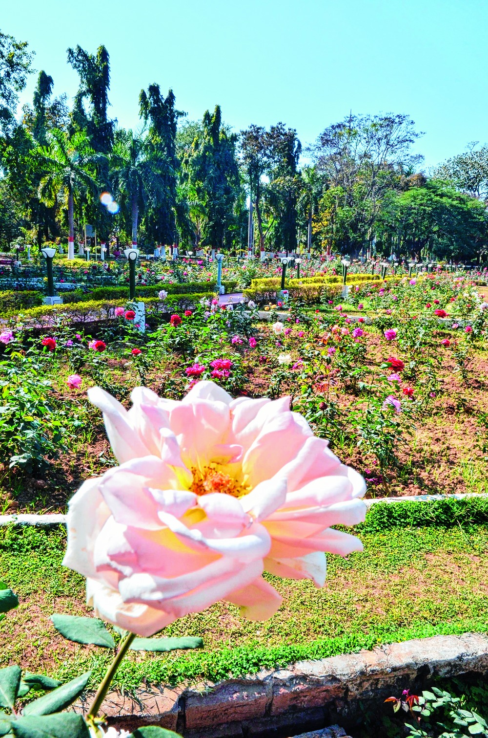A sprawling rose garden at Raj Bhavan in Ranchi on Tuesday. The garden will extend a hearty welcome to people on Wednesday. Picture by Prashant Mitra