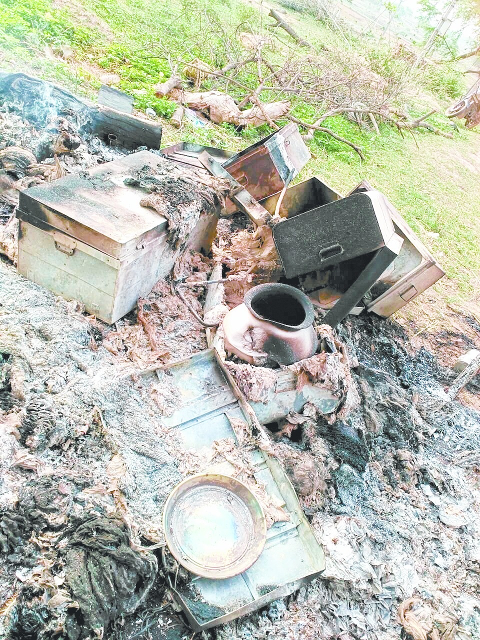 The mob then broke the main door and raided the huts of Sanatan and his brothers - Ravin Chandra Hembrom, who is in CRPF in Allahabad, and Shankar, a JAP jawan in Jamshedpur, - located on the same campus. They threw the household goods, poured kerosene oil and torched them.