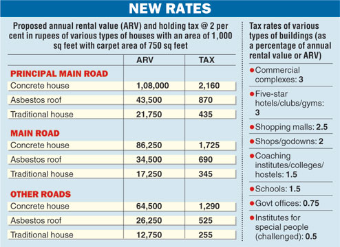 While ward councillors approved the recommended rates of annual rental value, but proposed that Ranchi house owners pay 2 per cent holding tax instead of 2.5 per cent.
