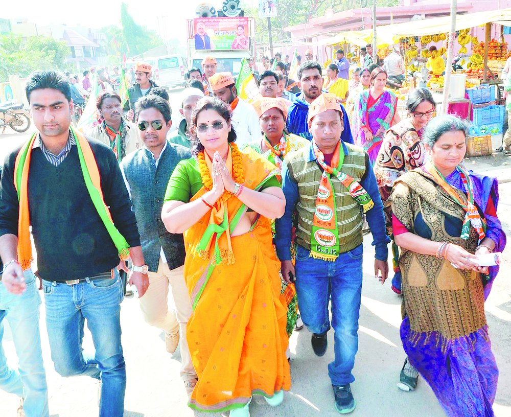 BJP's Hatia nominee Seema Sharma on a padyatra in Harmu, Ranchi, last week. Picture by Prashant Mitra
