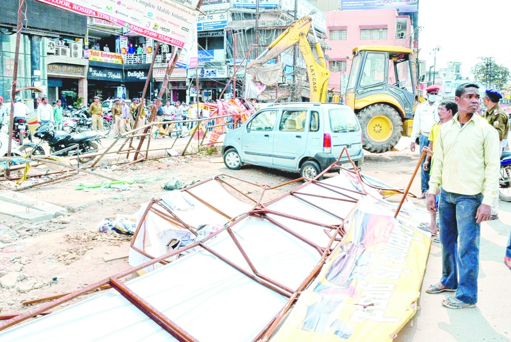 But, the complex was found to be using 18ft of road space for its private parking. Not only that, the encroached area had been fenced off with iron grille and a portion rented out to small shops. RMC workers, under the supervision of Kumar, traffic SP Manoj Ratan Chothe, civic officials, magistrates and police, dismantled the iron barricade and removed a dozen hoardings to free the road near Roshpa Tower.