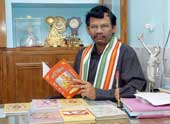 | Nand Kumar Bera displays the books written by him at his residence in Ranchi. Picture by Hardeep Singh |