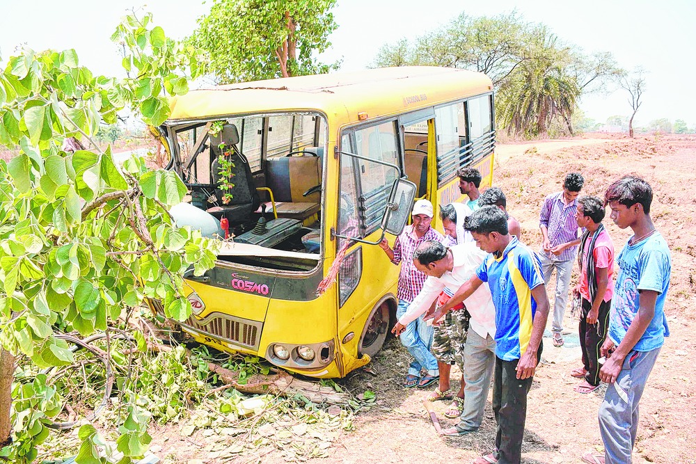 Nine schoolchildren were injured, one of them seriously, when their speeding bus hit a tree and plunged 8ft into a ditch on Ganjia-Gamharia Road in Seraikela-Kharsawan, 20km from Jamshedpur, on Tuesday morning.