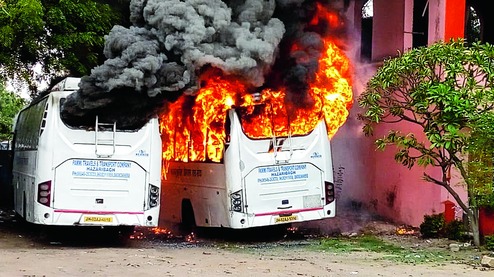 Ranchi: Two AC passenger buses belonging to the well-known Pammi Tour and Travel Company in Hazaribagh caught fire at the town's bus stand on Saturday. Another bus of the same transporter had caught fire on Friday.