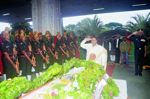 Governor Droupadi Murmu, state minister Neelkanth Singh Munda, JVM chief Babulal Marandi and his party colleague Bandhu Tirkey, Mandar MLA Gangotri Kujur, home secretary S.K.G. Rahate, Ranchi DC Manoj Kumar, among others went to Ranchi's Birsa Munda Airport to receive the slain hero whose village is only 2km away from legendary tribal freedom fighter Budhu Bhagat's village in Shilagain.