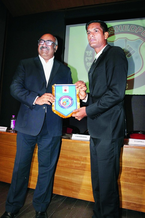 Earlier, Bhaskaran unveiled the Jamshedpur FC logo and handed it over to team goalkeeper Subrata Paul, who was present on the occasion, along with assistant coach Ishfaq Ahmed and officials of Tata Steel sports wing.