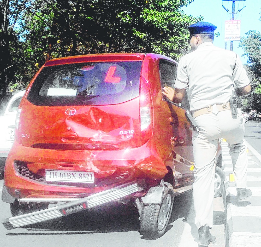 The victim, DPS-Ranchi English teacher Keya Chakraborty, said she was bound for Lalpur when the white Bolero crushed her red Nano from behind. The intensity of collision was so huge that the hatchback was turned into a mass of mangled metal, its right front wheel twisted and punctured at the same time.
