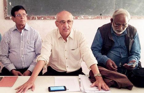 FACT-FINDING TOUR: IAS officer-turned-activist-author Harsh Mandar (centre), journalist-activist John Dayal (right) and retired IAS officer of Bihar MA Ibrahimi at the news conference in Ranchi on Wednesday. Telegraph picture