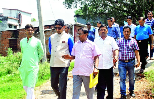 IAS officer and Dhanbad boy Abu Imran (second from left) inspects PK Roy Memorial College on Sunday. (Gautam Dey)