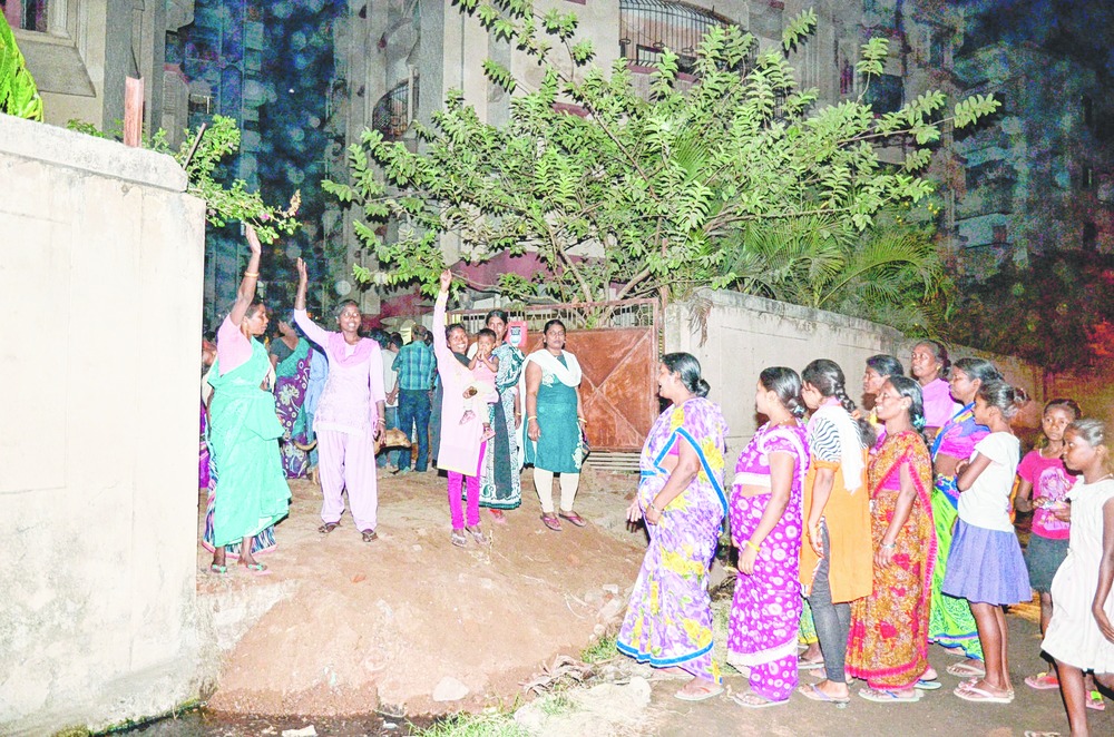 Triumphant residents of Harihar Singh Road after they broke open the rear gate of Gokuldham in Morabadi, Ranchi, on Thursday evening.