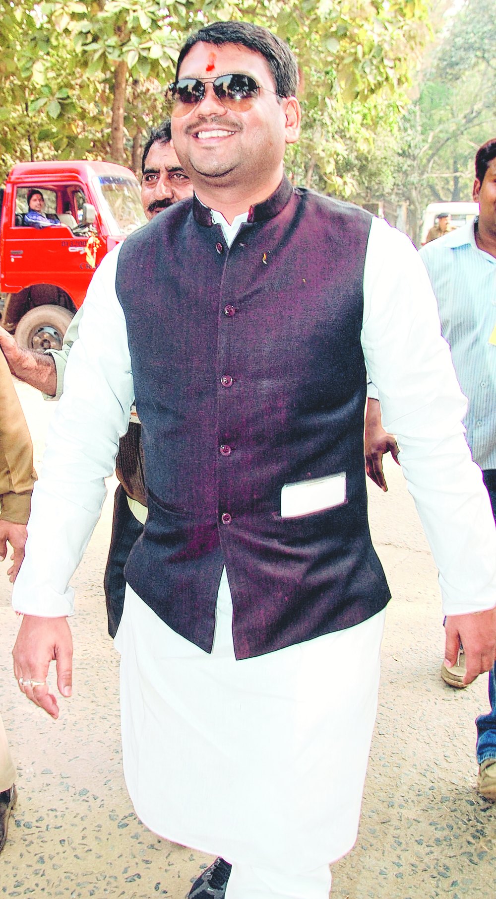 BJP's Jharia candidate Sanjiv Singh is all smiles after his victory on Tuesday. Picture by Gautam Dey