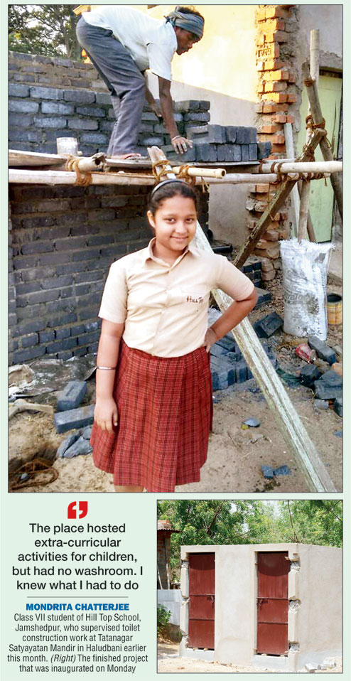"I had accompanied my father for a heart check-up camp at the ashram, 10km from the city, last December. I saw the place hosted extra-curricular activities such as yoga, dance and classical and instrumental music for children from nearby areas, but had no washroom. I knew what I had to do," said Mondrita, a resident of Telco and daughter of Amitav Chatterjee who is director-cum-cluster head of Meditrina Hospital in Adityapur.