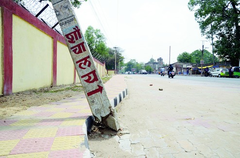 S.N. Choudhary, power department executive engineer of Kokar area, feigned ignorance. "No one ever complained about it," he said and added that the pole was possibly damaged after being hit by a vehicle. "I will get it checked and replaced soon," he assured.