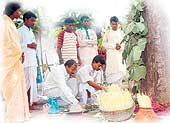 From early morning, unmarried girls, who fast for the day, are ready with their offerings and prayers. Once the religious, traditional rites are over, the tribes go to the forests in search of a Karam tree, cut its branches and bring it back home to plant in their courtyards. Once the puja is over, the farmers take care to plant the twigs in their fields, too. The next day, they follow it up by planting bhelva twigs in all the fields. Farmers select trees which are not eaten by cattle, then cut off the twigs, which are then planted amongst the standing crops. The twigs, it is believed, act as pesticides, warding off even prying birds and locusts from the crops.
