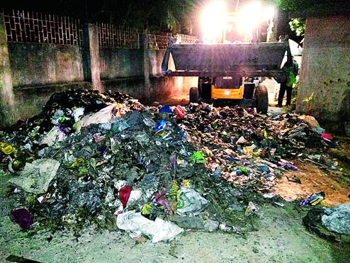 On Tuesday afternoon, residents of Ajay Enclave in Matwari couldn't help but come out of their flats with their noses covered to block the stench from the garbage that was unloaded at the instruction of sadar SDO Aditya Ranjan.