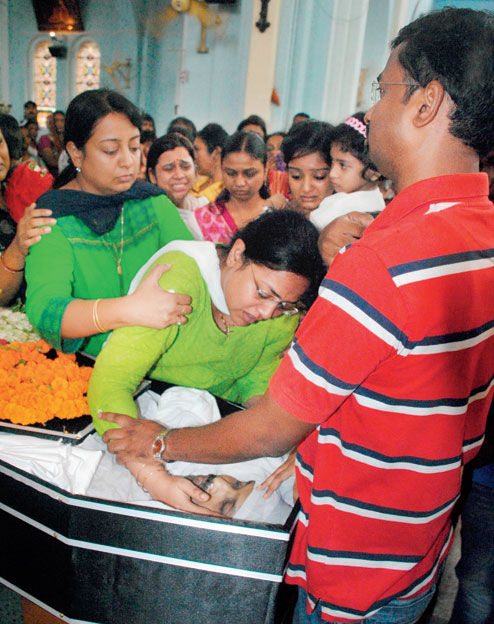 Tigga's widow Sonali, his two primary school-going children Aditya and Shaina Neela, colleagues at ACB where Tigga joined in 2013 and scores of people assembled in dignified sorrow after the body of the 1999-batch police officer was brought to St Mary's Cathedral on Purulia Road for last prayers around 11.30am.