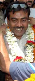 | Bihar LJP legislator Rama Singh is all smiles outside the court premises in Sakchi. Picture by Srinivas |