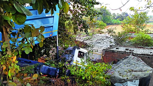 Ranchi: A brand new dumper ploughed into a slum at Namkum, around 10km from here, damaging at least two semi-pucca houses and a water pipeline around 5pm on Monday. Luckily, nobody was hurt in the accident.
