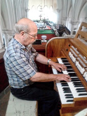 | German musician Hartmut Grosch tests the keys of the grand organ (right) at GEL Church in Ranchi on Sunday. The instrument is gearing up for a November 2 debut. (Hardeep Singh) |